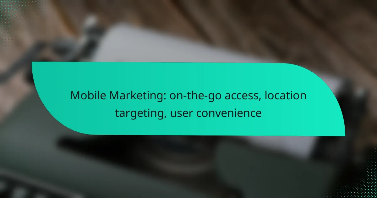Mobile marketing revolutionizes the way businesses connect with consumers by offering on-the-go access to tailored information and services. By utilizing location targeting techniques, companies can deliver personalized content that enhances user convenience and engagement, ultimately driving conversions. With the right tools and strategies, businesses can effectively reach their audience wherever they are, making mobile marketing an essential component of modern advertising.